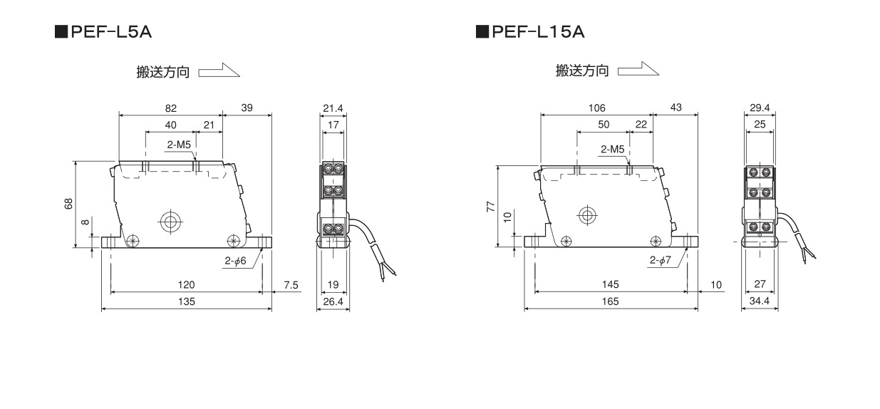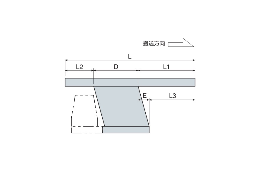 インラインフィーダへのシュート取付基準寸法(前後への振り分け)