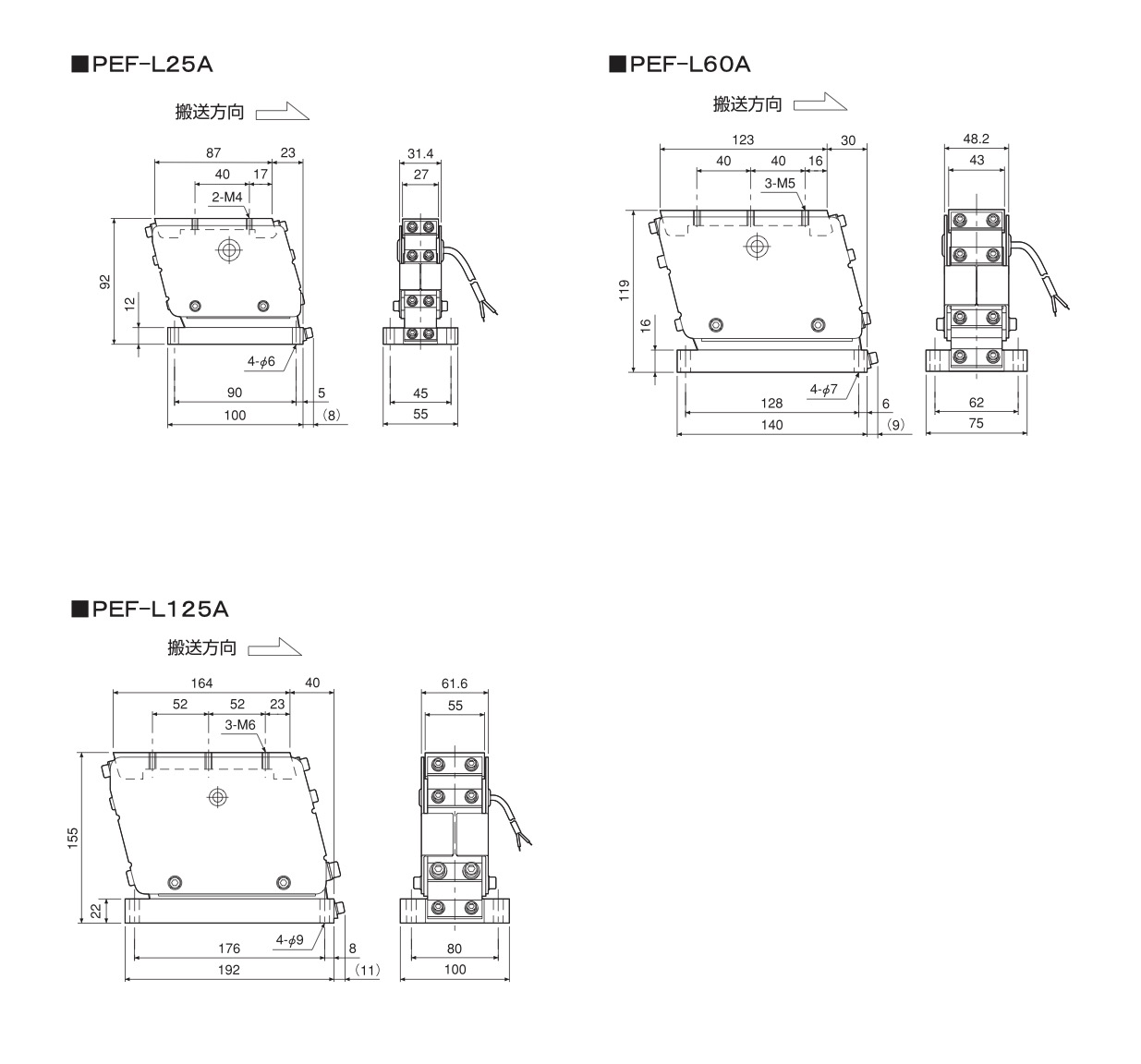 スピード性に優れた直取付方式。中・大物ワークでも滑らかな搬送ができる継ぎばね方式。中・大物ワークを高速で搬送ができる超低反力のゴム脚方式の3タイプをラインナップしています。ニーズに合わせて、お選びいただけます。
