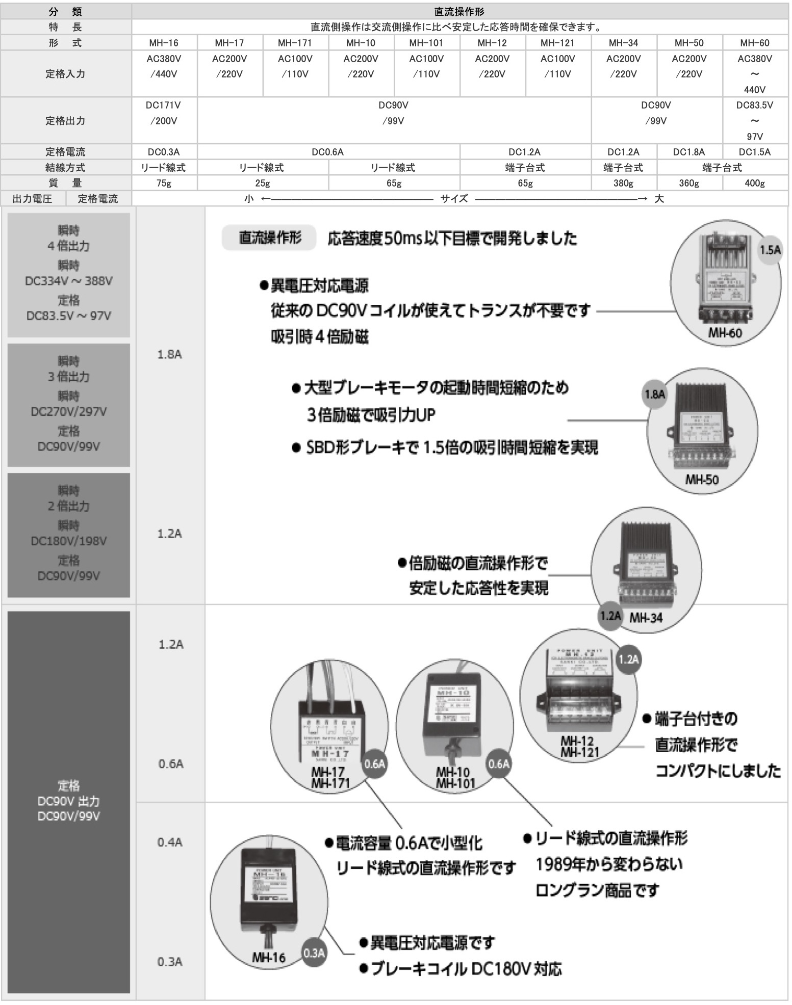 直流開閉により、モータからの回生電圧の影響はなく、制動遅れ時間の短縮が可能です。