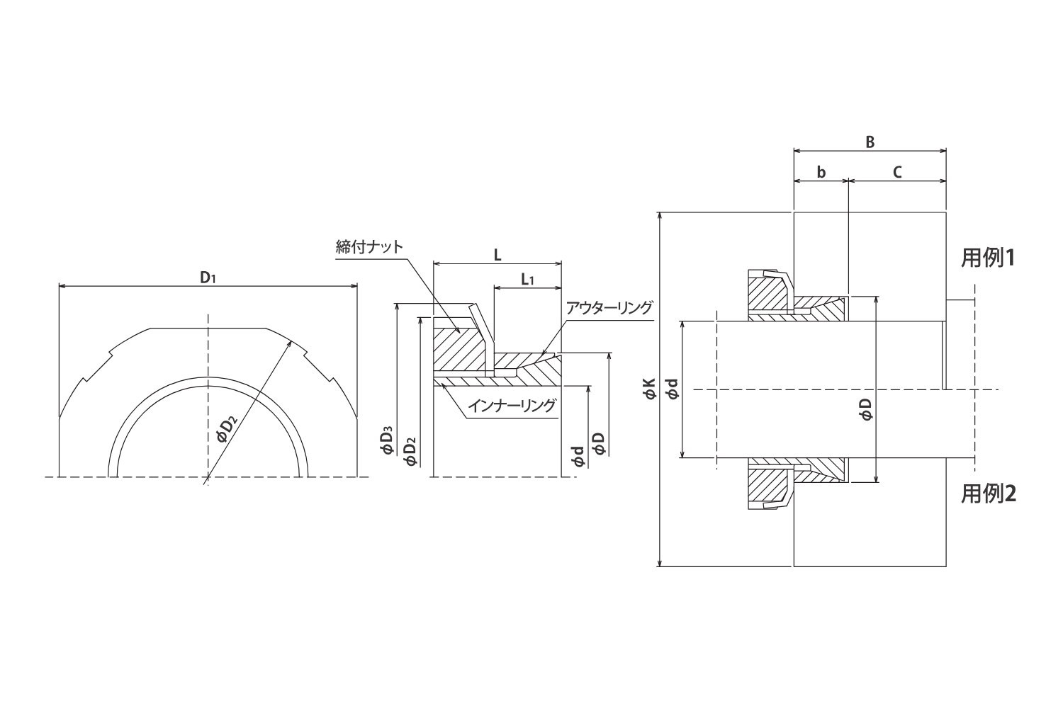 短い幅のボスに取付け可能な製品です。繊維機械用長シャフト・鉄道用車輪・ファン・攪拌機・ローラー等に適しています。
