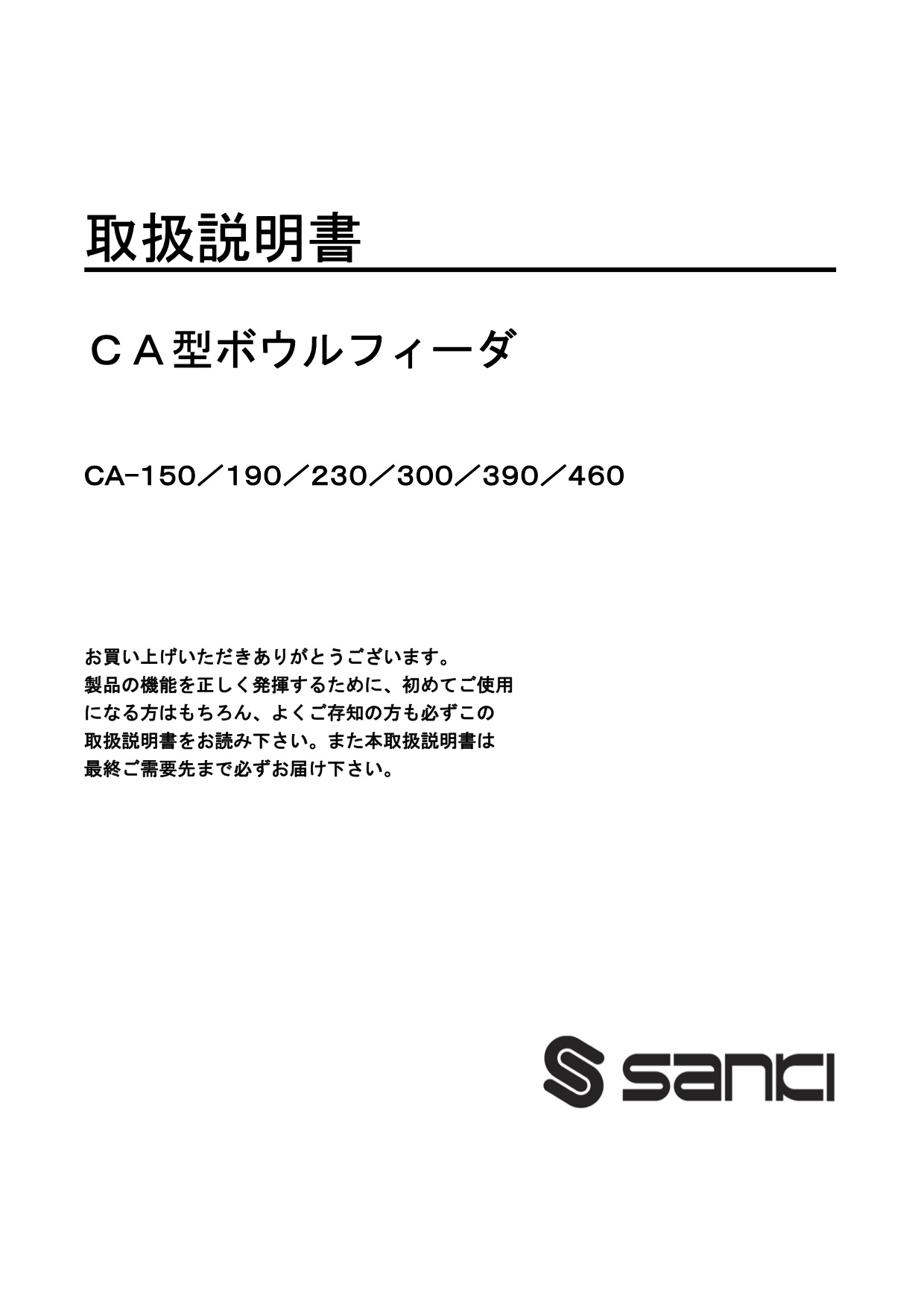 CA-150, CA-190, CA-230, CA-300, CA-390, CA-460 - 取扱説明書:パーツフィーダ・パーツフィーディングシステム