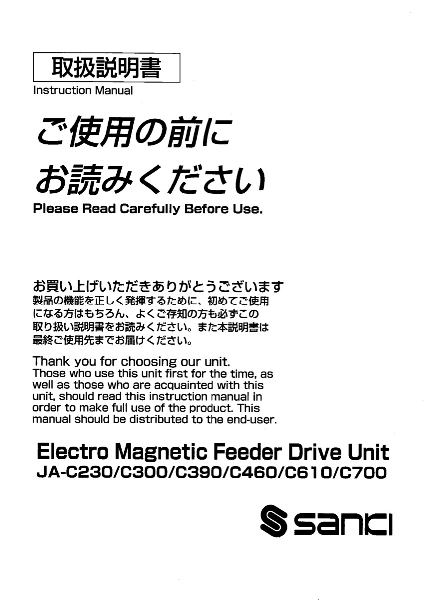 JA-C230, JA-C300, JA-C390, JA-C460, JA-C610, JA-C700 - 取扱説明書:パーツフィーダ・パーツフィーディングシステム