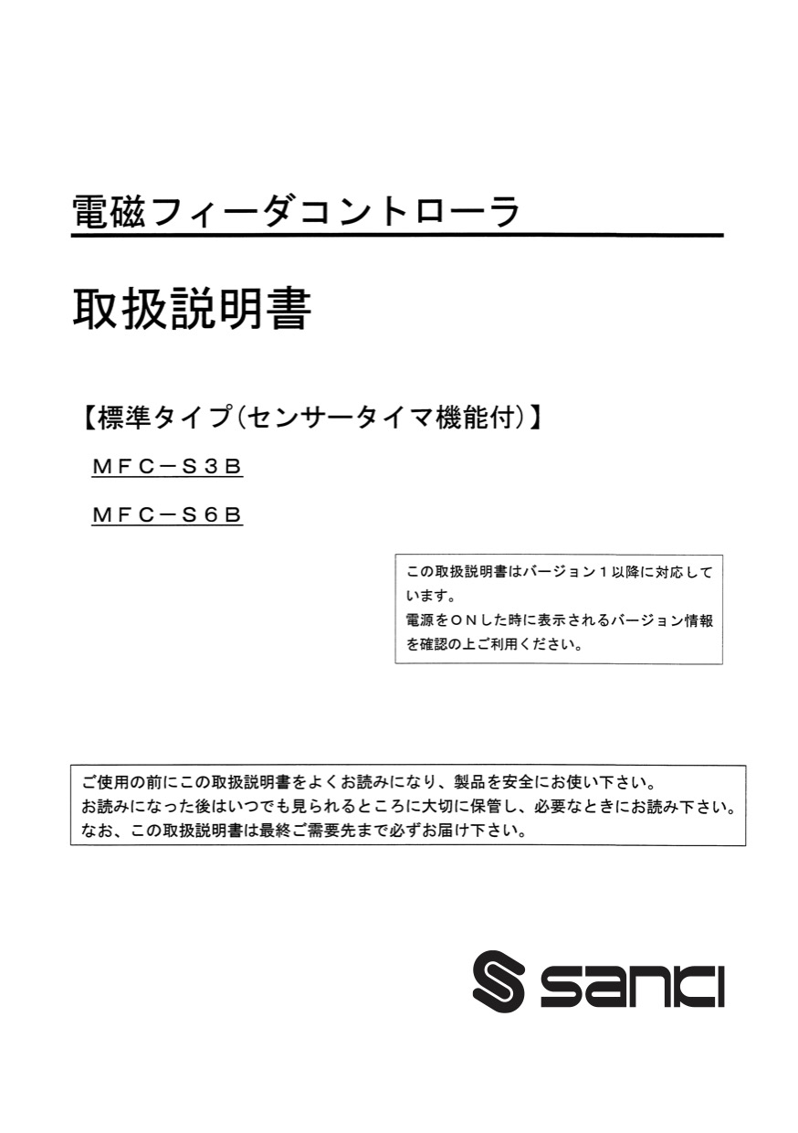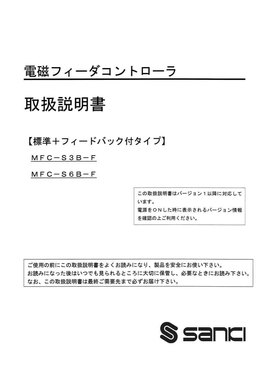 MFC-S3B, MFC-S6B - 取扱説明書:パーツフィーダ・パーツフィーディングシステム