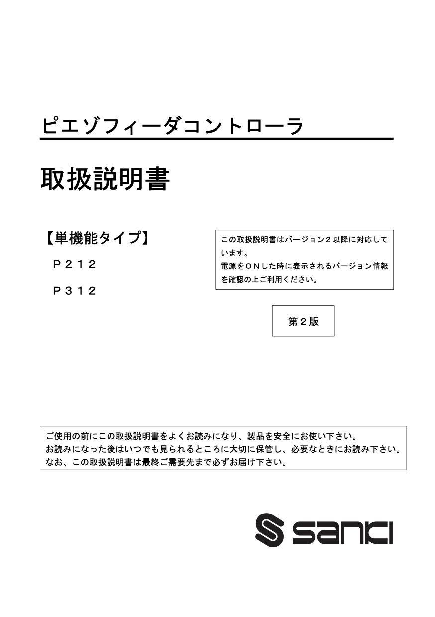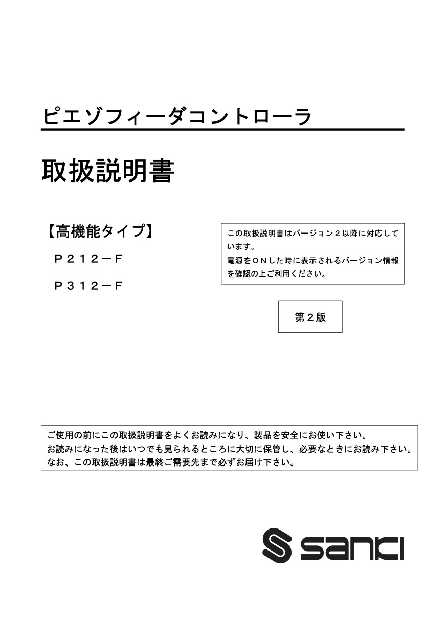 取扱説明書:ピエゾ用コントローラ Pシリーズ高機能版(フィードバック付) マイナーチェンジ 【日本語版・英語版】