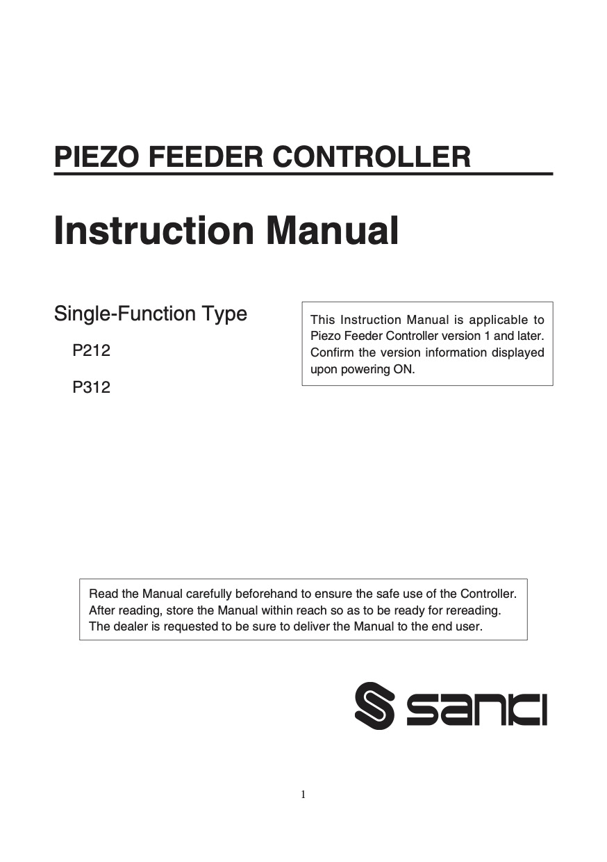 P212, P312 - 取扱説明書:パーツフィーダ・パーツフィーディングシステム