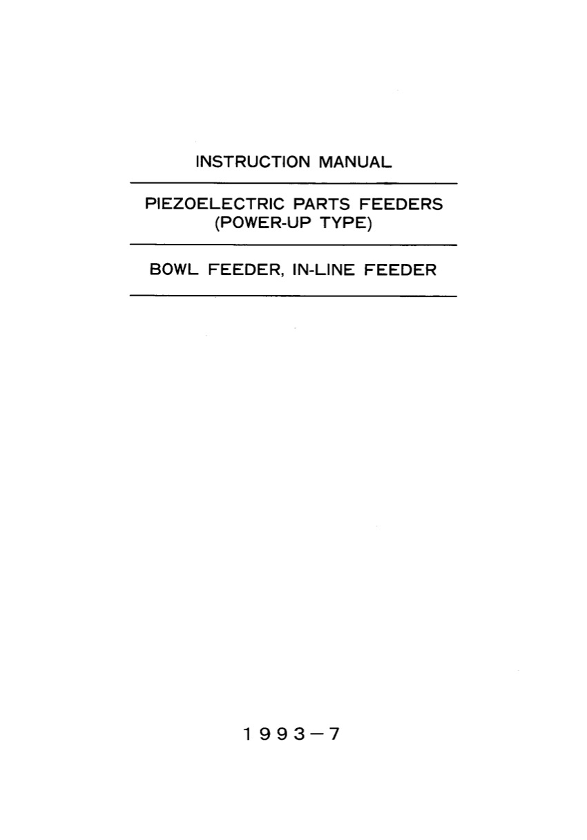 取扱説明書:ボウルフィーダピエゾシリーズ