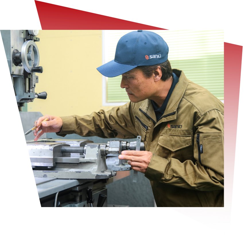そして、お客様のニーズを実現するため、設計・製作・検査・保守までの一貫生産体制を実現。製品の品質の良さや耐久性の良さが評価され、SANKIブランドとして北米・アジアを中心に海外へも供給しています。