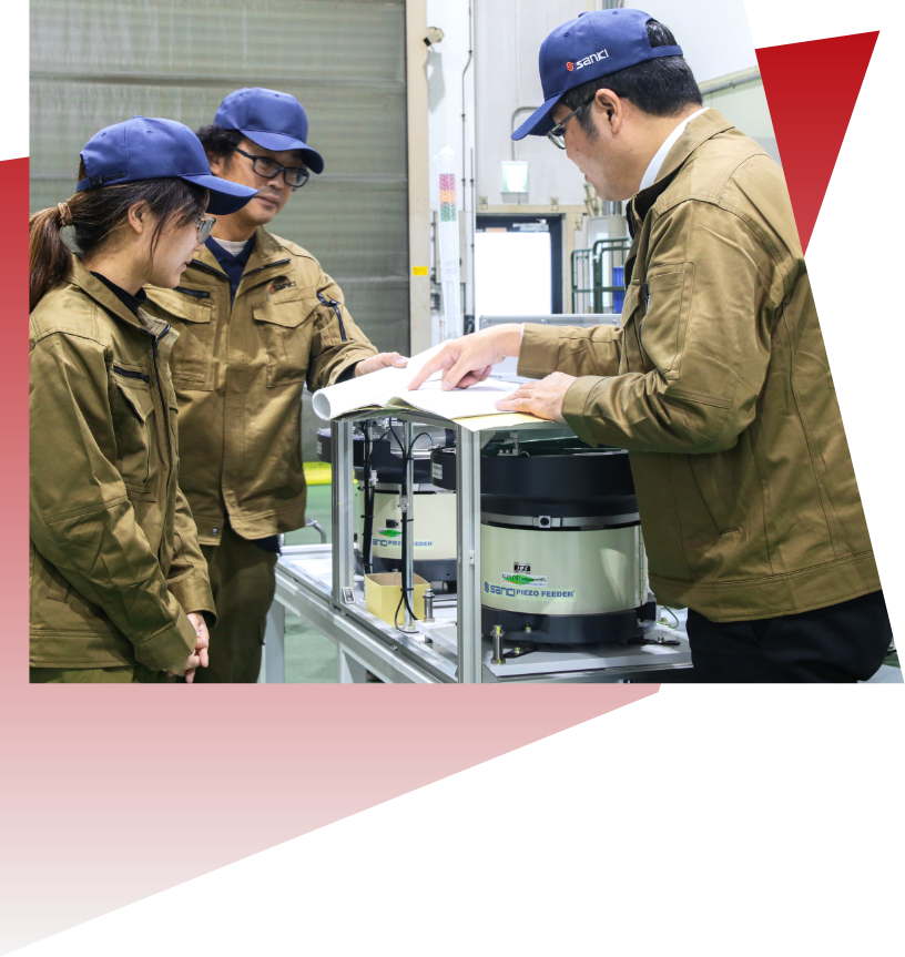 SANKIブランドは、そのすべてが一貫生産体制で製作され、打ち合わせ・設計・製作・検査、そしてメンテナンスまで、その道のプロフェッショナルが全て行っています。この生産体制が高品質・短納期・安心アフターを実現しています。品質管理においては、最新の映像解析により高品質を実現。安心アフターにおいても徹底したスピード対応で、多くのお客様の評価をいただいております。